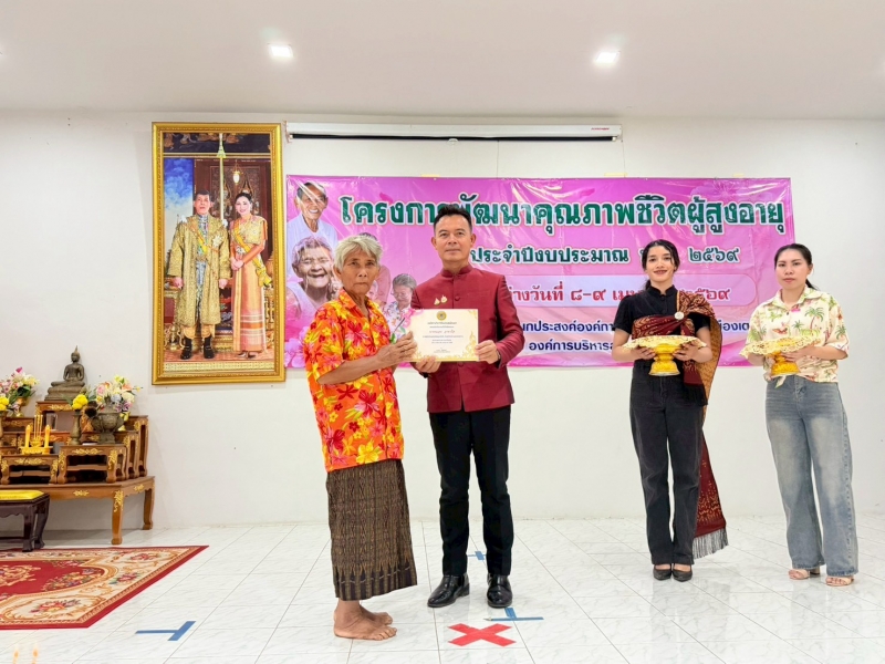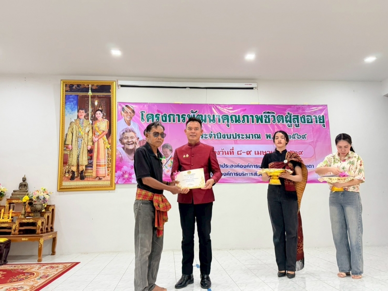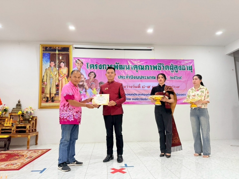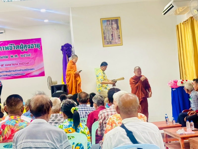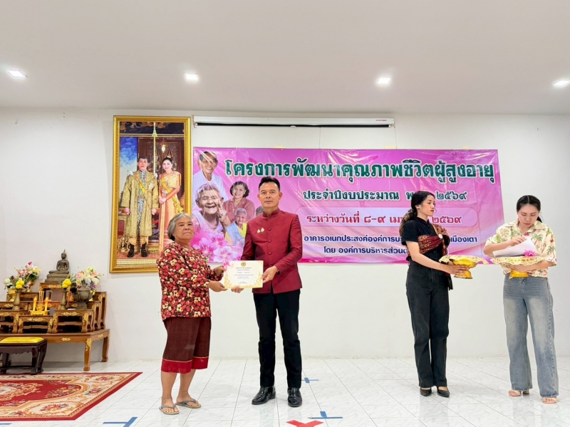 กองสวัสดิการและสังคมได้ดำเนินการจัดโครงการพัฒนาคุณภาพชีวิตผู้สูงอายุ ประจำปี 2569 ระหว่างวันที่ 8-9 เมษายน 2569 ณ อาคารอเนกประสงค์องค์การบริหารส่วนตำบลเมืองเตาโดยมีนางพิมทิพย์ คณะมะ ปลัดองค์การบริหารส่วนตำบลกล่าวรายงานและนายบวร พิมพ์แพน นายกองค์การบริหารส่วนตําบลเมืองเตา เป็นประธานในพิธีเปิด ร่วมกับคณะผู้บริหารฯ ประธานสภาฯ ,รองประธานสภาฯ สมาชิกสภา ผู้ใหญ่บ้าน หัวหน้าส่วนราชการพนักงานอบต.เมืองเตาทุกท่าน และท่านนายกได้มอบเกียรติบัตรให้กับปราชญ์ชาวบ้าน และรดน้ำดำหัวผู้สูงอายุในวันปีใหม่ไทย